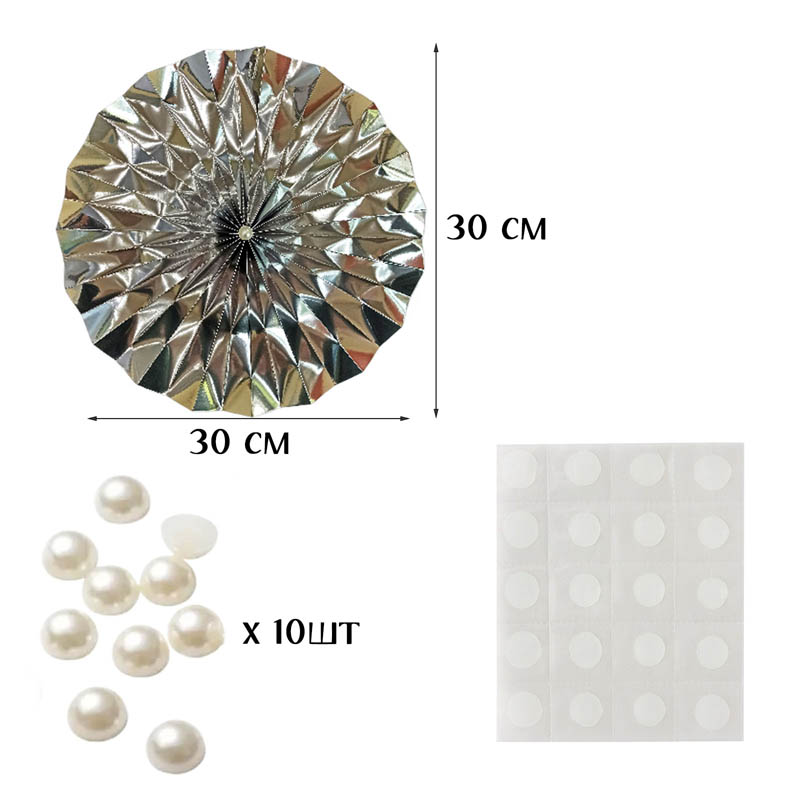Фанты фольгированные с жемчужиной НАБОР 10шт х 30см, серебро