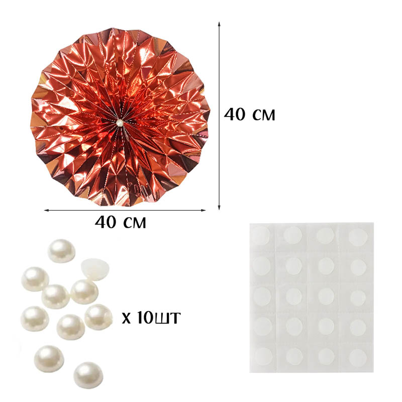 Фанты фольгированные с жемчужиной НАБОР 10шт х 40см, розовое золото
