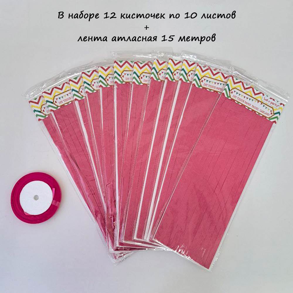 Гирлянда тассел 12 кисточек по 10 листов, амарантовый