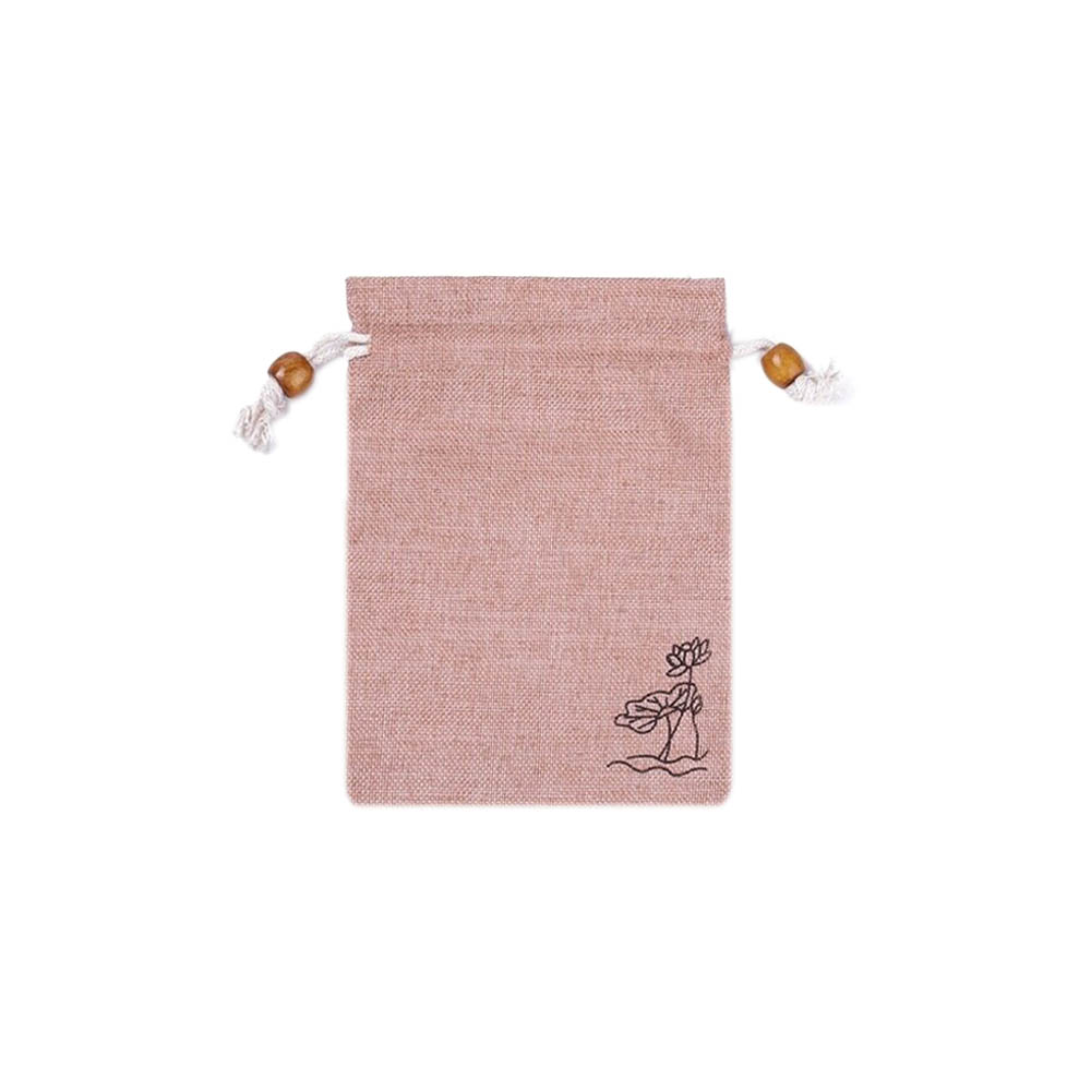 Мешочек из искусственного льна с орнаментом 10х14 см, нежно-розовый